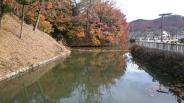 | 甲府駅からはわかりやすい1本道(ただしずっと緩い登り)。 宝物殿にある城(館?)の模型図を見た後に回ると、残っている堀などの雰囲気が掴みやすいです。北側からは要害山も見えて位置関係がよくわかります。 若干終わりかけでしたが紅葉がまだきれいでした。 |