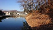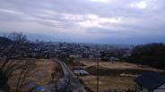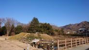 | 山裾に立つ要塞。重厚な堀が周囲を囲む。 土塁や堀など遺構がくっきりしています。雪の積もった山々を当時の人もこうやってみていたのかなぁと思う散策でした。 |