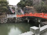 甲府城の後、北口へ移動し、30分おきにあるバスで、武田神社へ移動。空堀と水をたたえた堀を見てから、お参りをして、おみくじを引きました。 |