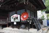 | 宝物殿でスタンプget 300円払って中に入り、川中島の戦いで、啄木鳥戦法したとき妻女山で奪ったと伝わる「昆」の旗や孔子の旗「風林火山」(特別展示)が展示され、なかなか見応えがあった。 |