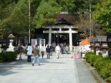 | 《20城め》 七五三だったのね、小雨が降るのにすごい人。 学生時代は、行き止まりにある神社だと思ってた。 いつの間にかお土産屋さんができている。オドロキ。 左に行ったのち下る方向に専用駐車場ができていた。 社務所で処理してもらえば無料。 |