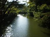 | お堀をアヒルが泳いでいた。 |