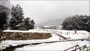 | 質素ともいえる城が信玄を思わせるものでした。ちなみに,氷点下約7℃の早朝の要害山登城から見える富士山はすばらしいものでした。登山はしんどいですが。 |