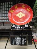| 武田神社の鳥居の前で信玄の鎧兜をかぶって写真が取れるようになっていました。 |