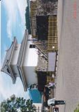 | 六十六城目(新五十四城目)。 武田氏館の後に登城、小雨ふる夕方で、すでに事務所や櫓は閉まってました。翌朝に再登城。スタンプは稲荷櫓のがオリジナルのシャシハタ式ですが、係りの人が言う通りにじみます。公園管理事務所の方は普通サイズのゴム印タイプで、綺麗でした。場内でお会いした案内の方に捕まり、今度当選した知事さんが、天守再建を公約にしてるけど、資料がでてこなくてって話をお聞きしました。天守台から富士山見えるのですが、鉄塔が...残念。 |