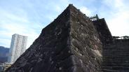 | 始めに、山の手御門を見学。そこでびっくり!!案内ビデオに、若かりし吉田羊さんがガイドしていました。間違いない!? 遺構は、残念ながら、天守はないが立派な石垣が高々と積み上げられていました♪ |