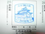 66城目、甲斐国甲府城。身延線で北上甲府泊、朝一で登城。前日の雨から一転快晴になった。 正直、甲府城はあまり有名でないので期待してなかったけど、 以外に凄かった。西国の石垣城の様な縄張で楽しめました。 門や櫓、そして、北口も新たに整備され行政が力を入れています。 パンフレットなどの資料も結構ありました。満足です。 スタンプは稲荷櫓内部、管理室に有り。状態良好。 |