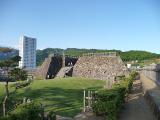 第8城目石垣が立派なだけに、建物が欲しいです。ここの立地は城らしくないですね。写真を撮ろうにも、後ろのごちゃごちゃした景色が写ってしまい、興ざめです。街中なので、仕方ないのでしょう。どうせなら、完全に再建して街のシンボルにして欲しいですね。今は、とにかく中途半端な感じです。 |