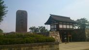 | 夕刻ギリギリで松代城に到着しました。復元された太鼓門櫓は屋根が萱ぶきで瓦を用いられておらずなんとなく江戸時代の城というよりも中世の城郭の雰囲気を色濃く残していますね。 |