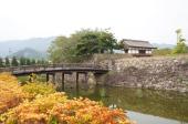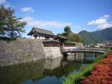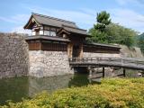 | 復原された太鼓門と太鼓門前橋がある。 石垣も立派。 |