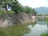 本丸周辺の石垣を残すのみの城址だが、以前は千曲川も城の近くを流れ、縄張りを見ても堀に囲まれた堅固な平城だった事がわかります。城址は公園としてよく整備されています。川中島合戦当時は海津城として武田方の重要な拠点であったが、その面影は感じられない。松代の街を散策していたらバスを1本乗り遅れてしまった。次のバスまで1時間10分待つことになった。暑かったので真田宝物館の近くでブルーベリーのソフトクリームを食べて待っていました。おいしかった。 |