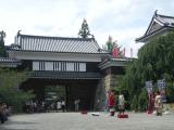| 上田城の門の前に真田幸村がいた。 |