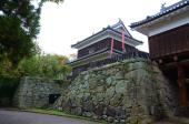 | 早朝に別所温泉の外湯で身体を癒した後、市街地に戻って城跡へ。 案内などは少ないですが駅から城跡に向かう途上の上田高校の正門付近は藩主屋敷の門と堀の姿を今に残しています。 二の丸橋を渡って」城址公園に入ると大勢の観光客で賑わっており真田氏の人気が窺えます。 現在に残る櫓もあまり派手さはありませんが武骨な雰囲気が歴戦を潜り抜けた上田城のイメージによくあっているかと思います。 また本丸の土塁や西側の尼ヶ淵跡から見上げる堅固な高石垣などもこの城の防御の備えが堅かったことを窺わせます。 【67/100】 |