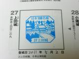 | 14城め。上田駅から徒歩10分強。二の丸橋前の上田市観光会館2階にてスタンプ、良好。スタンプは、城内櫓に設置らしいが、3月末まで公開中止、その間は上田市立博物館、ただし休館日(水曜など)は前記場所に(博物館前に掲示あり)。城域はそれなりに広く、桜の頃にはいいのだろうと思った。★ |