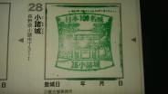 17城目。池袋から西武(千曲)高速バスで(2回回数券4,600円、0820池袋→1124小諸)。 穴城とは何ぞやと思っていましたが、三の門に向かって歩いて納得。城に向かって下るのは初めてで新鮮です。 スタンプは・・・多くの方が書かれていますが、シャチハタ印の状態は最悪。私の前にスタンプ押そうとしていたご夫婦も唖然としていました。相当試し押しをする必要があります。それでも、微妙な具合になりましたが→写真参照 スタンプは徴古園入り口にあり、入場券は不要です。入場券300円のところ、藤村記念館・小諸義塾記念館・動物園などに入れる共通券500円を購入。島崎藤村に興味がある方にはお得だと思います。 城で感心したのは空堀の深さ。守備力の高さを感じます。線路の反対側にある大手門も見事で、期せずして大手門の中に入れてラッキーでした。中に入れるのは、4月の第2土曜日〜11月の第2日曜日までの土日祝日とのこと。 あと個人的に嬉しかったのは、城内で冷やし飴&飴湯を売っていたこと。大好物なのですが関西以西でしか見たことがなく、偶然の出会いに感激しました。 続いて上田城へ |