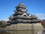 | 登城32城目。(甲信遠征1/4城目。) 東京での出張研修の2日前に新宿駅近くのホテルに泊まり、新宿駅発の午前8時ちょうどの中央線【スーパーあずさ5号】で、約2時間半で松本駅に到着。その後、徒歩約15分、午前11時頃に着きました。天気は、晴れ。城内は、結婚式の衣装での写真撮影をする人や外国人観光客など、ざっと数百人は、いました。 本丸の天守閣を堀沿いに見学した後、40分待ちの表示がりましたが、610円の観覧料を払って天守閣の中へ。門から入ってすぐ右側の事務所で、無事にスタンプ押印。日曜日で観光シーズンということもあってか、中は長蛇の列。次への移動の時間を気にしながら、行列に並んで天守閣へ登城しました。 中は、階段が非常に急で狭く、また段差も大きく体が元気でないと、特に下りが厳しいと感じました。 さすが、日本で2番目の規模の国宝現存天守でした。姫路城にも並ぶ、一見の価値がある歴史と風格を感じる造りで、非常に感慨深いものでした。外観も、100名城ガイドブックの表紙を飾るだけある素晴らしい姿でした。 その後、再建された二の丸太鼓門を見学後、次の予定地へと徒歩で松本駅へ向かいました。 |