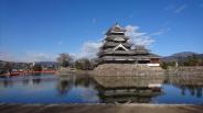 | 正月長野攻め最後の松本城。正月は10時開場。北アルプスを背景にした姿は最高でした。 |