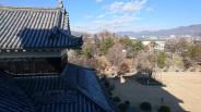 2016年最後の登城で、この日は松本城の年内最後の開場日でした。ということで観光客は少なくて、じっくりと観ることができました。ただ、めちゃめちゃ寒かったです(最高気温3℃!)。同じ国宝の姫路城とは対照的に黒いですが、威厳と風格を感じさせる美しさがあります。思っていたよりも小さいと感じましたが、迫るものがあります。天守内の階段がこれまでに登った現存天守と比較して一番と言っていいほど急でした。 |