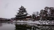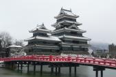 | 7/100。前夜の大雪で真っ白な中、松本城の黒が非常に映えていました。 |