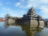 | 第62城目 能登加賀屋から白川郷・松本への旅行でした。松本城は、何回も登城していますがスタンプは今回が初めてです。いつ来てもきれいなお城です。お城まで歩いて5分ぐらいのとことにバスは駐車しました。風が強い日でしたが天気は晴れで写真がきれいに撮れました。 |