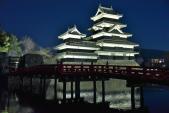 | 95城目。前日の夜に松本に着き、翌朝に登城。夜は天守がライトアップされているので写真撮りに行った。埋の橋側から見た天守と市役所の展望室から見た城郭は最高に良かった。 |