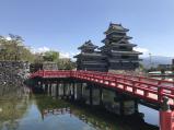 | 二回目の登城です。前回はスタンプの存在を 知らなかったので再登城です。 松本城はいつ見ても立派だなと思います。 とくに赤い橋と松本城とのセットは素晴らしいです。 |