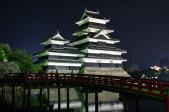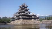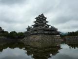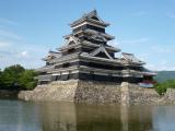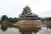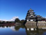 | 6城め。 城の王道。さすが国宝。黒漆は毎年塗りなおしているので美しいまま。 天守は連結式天守(大天守と乾小天守と渡櫓)と複合式天守(大天守と辰巳附櫓と月見櫓)の2つの形式を合わせた連結複合式天守で、連結複合式層塔型五重六階。 現存する五重天守の中では日本最古(現存する五重天守は松本城、姫路城の2基のみ)。 天守までの階段は傾斜が50〜55度。かなりきつい。 天守の梁の上には二十六夜神伝説の神様が祀られている。1727年の本丸御殿の火事の際に天守が焼けなかったのはこの守り神のおかげだと伝えられている。 1504年小笠原氏一族の島立貞永が築いた深志城を武田信玄が大規模な改修を行い要衝とした。1582年小笠原貞義が松本城に改称。次に石川数正が城主になり近世城郭の普請を行い、後の城主、松平直正が天守に辰巳附櫓、月見櫓を増築した。よって戦国時代と江戸時代の建築物が繋がっている造り。月見櫓は平和の象徴のよう。 1873年の廃城令で競売にかけられたが、地元民により天守だけは廃却を免れた。 アルプスを背景にお堀に逆さに映る城を合わせて撮影すると本当に美しい。 あ〜美しい。本当美しい。 |