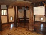 | 最上層の天井の柱がとても印象的。 |