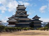 | 松本のビジネスホテルに一泊し、松本城の営業開始時間8時半に登城。 駐車場も、まだ車がまばらでテンションが上がる。 やっぱり、有名な城は前日に現地で泊まり、朝一から登城するのが一番だ。 やっぱりいい。 重厚な感じで黒が映える。 さすが国宝だ。 行った甲斐があったということだ。 |