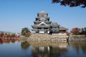| 5城目。国宝4城の一つ「松本城」 大人600円。12月29日〜1月3日はお休み。 平城のため、駐車場から歩いて、すぐ城と巡り合える感じ。 とにかく黒い、かっこいい。 晴天で埋橋の赤さと、黒い城が水堀に映し出された風景はなおよい。 スタンプは濃いので注意!! |
