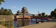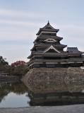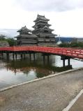 | orange という漫画の舞台が松本で若者には人気らしい。月見櫓が修理中で白い幕で覆われているのが残念。乾小天守発調査の結果、地震で倒壊の恐れがあるため中に入ることが出来ません。でも素晴らしい城。黒い城ですが別名は 深志城で 烏城 とは昔から言われておらず間違いだそうです。 |