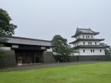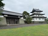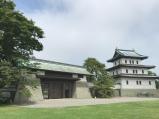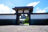 | 上ノ国勝山館から車で日本海沿いを南下して、約50分で松前城へ。 スタンプは復興天守の松前城資料館受付にて押印。私の次に押印した年配の男性が「フー、やっと終わった。」と言ったので「どうかしましたか?」と聞くと、「いや100名城訪問がここで完結なんですよ。」と感慨深げでした。この会話を聞きつけた受付の女性が出てきて、「おめでとうございます。松前城では100名城登城完了の方には記念写真を撮らせていただくことになっているのですが、時間ありますか?」と聞いていました。その男性は躊躇なく「はい、大丈夫です。」と誇らしげに答えておられました。 さて、江戸末期に建てられた松前城には本丸御門が遺構として残っています。そのほかの建物は近年復興復活のものですが、外堀や石垣がなかなか見ごたえがあります。 |