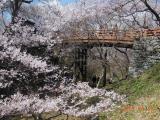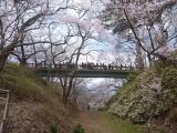 高速伊那バス停から路線バスで。城内は花見客で大混雑。空堀から見る桜雲橋はナイス。 |