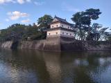 続いて本丸の堀沿いを歩いて三階櫓へ。といっても、三階櫓は自衛隊敷地内にあるので堀越しに眺めるしかない。空の色が少し反射してか、屋根が青味かかって見えた。まさに街のシンボル。歴史的価値よりも、やっぱり”見栄え”だよな。