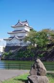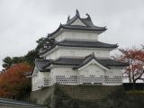 | 【12城目】 出張の仕事後に立ち寄り。 屋根に鯱が3つ載っているという珍しい櫓を見ることができました。 壁の向こうは自衛隊の基地がありびっくりしました。 |