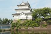 | 42城目、青春18切符で上信越7城を三日で回る強行日程です。箕輪城で想定外に時間を使ったため、上越新幹線で越後湯沢までショートカット。長岡、新津と乗り継いで金魚台輪の飾られる新発田駅へ。駅からお城までは2kmくらい歩きます。溝口秀勝6万石の城ですが、明治初期に解体され、本丸の石垣と堀の南半分、土橋門跡土塁を残すのみです。目の前には特別養護老人ホーム二の丸が。本丸内部は狭いですが、重文2件を無料で見せてくれる新発田市様、ありがとうございます。3つの鯱で有名な三階櫓は陸上自衛隊新発田駐屯地内のため、中に入ることはできませんが、屋根の独特なフォルムがかっこいいです。明日の春日山に備え、快速くびき野で高田まで新潟県を縦断。 |