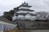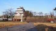 | 新発田駅より徒歩で登城。初めに図書館に行ってしまい、スタンプはここではないとのことで、いろいろ図書館の方にいろいろ聞いてもらい、市役所か白壁兵舎広報資料館にあるとのことをお聞きしました。市役所は反対側なので白壁兵舎に行くこととした。ここは自衛隊の駐屯地で、装甲車などが見える。ここは兵舎を資料館にしてあり、新発田城の資料他旧日本軍の基地でもあったので、大東亜戦争のここの部隊の戦歴が詳しく展示されていた。ガダルカナルやインパールにも参戦していたとはかなり驚きでありました。戦死、戦病死なさった方に黙祷。 城は、冬季のため中に入れず、外側のみの見学でした。 |