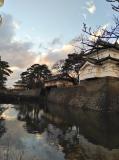 | 41城目の登城、木城復元された三つの鯱を持つ三階櫓見学占拠している陸上自衛隊駐屯地内のため、堀側からの外観見学のみが残念。天気は、駅に着いたときは小雨が振っていたが、城巡り後半に晴天になり、写真撮影は満足できた。 |