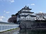 | 日本100名城46/100。 合計68/200。 前日の佐渡島では桜満開でしたが新発田城は、かなり散っていました。 再建三階櫓に3つの鯱が載っています。 スタンプは表門で押せました。 |