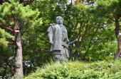 第89目の登城です。朝一番に春日山城跡ものがたり館でビデオ説明と室内展示を見てから春日山城へ向かいました。途中の謙信公銅像まで車で行き、そこから本丸まで歩いていきました。往復1時間弱かかりました。本丸からの眺めは最高です。 |