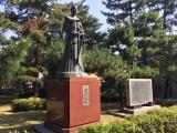 | 89城目 春日山城を後にして2時間程で高岡古城公園の北側に位置する小竹藪駐車場(無料)に到着しました。公園内の散策路に沿って歩きました。動物園内を通り市立博物館に着き、そこでスタンプを押印しました。その後、公園外に出て七夕の笹飾りのある街並みを通り、高岡大仏様を拝観しました。再び、公園内の射水神社へ参拝し、隣の本丸広場へ行くと緑の周辺には様々な彫刻が展示されており感動しました。前田利長銅像も有りました。 この城跡は、最高に美しい水堀をうまく利用した公園だなぁ〜と思いました。 |