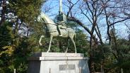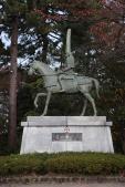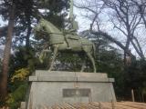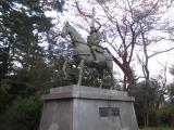 | 市立博物館でスタンプ。 見所は二の丸と本丸をつなぐ橋の石垣と、公園奥にある前田利長像くらい。 利家公のあのものすごく長い兜が特徴的です。 |