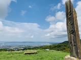 | 97城目 今夏も夫婦で自家用車にて東京の孫達に会いに行き、帰りに七尾城へ。本丸駐車場迄車で行きました。先客は1台でした。ここで城のパンフレットを頂き、杖も借り散策開始。駐車場から本丸迄10分。本丸跡からの眺めは素晴らしかったです。桜馬場跡→九尺石→二ノ丸跡→三の丸跡→安寧寺跡と回りました。途中の急な階段を降りるのがきつかったですが、綺麗に整備されており歩きやすかったです。その後、車で城山展望台まで行きました。七尾城本丸跡と七尾湾が遠くに見え素晴らしい眺めでここも来て良かったと思いました。その後、山を下り資料館の駐車場に車を停めて(無料)玄関前でスタンプ押印。資料館では、CGの映像を見ました(200円)100名城残るは北海道のみとなりました。 |