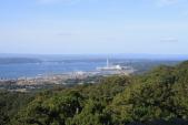 七尾駅に13時51分に到着後、市内循環バスのまりん号(順回り)に乗車、七尾城史資料館に向かった。資料館でスタンプを押した後、ビデオで七尾城復元のCG映像を観て、城の変遷を学習。資料館員に本丸跡まで徒歩で登ると言うと、少し驚いた様子で本丸まで1時間程度かかる上、最終まりん号は16時40分なので、間に合うようにと降りて来てくださいと教えられた。おまけに、日が短くなったし、イノシシも出るので気を付けてとも言われた。 14時40分、資料館の自販機で飲料を買って、本丸に向かった。林道を15分ほど登った後は、ところどころ段差の大きな階段や木の根の多い山径も続き、城らしい痕跡は見当たらない。幸い「本丸まで**Km」の道標があるため安心感がある。途中に七尾湾ビューポイントもあり、疲れを忘れることができた。三の丸跡地では初めて2人の登城者に会った。二の丸、桜馬場へ来て、杉木立を通して石垣が見え、城跡らしくなった。本丸跡直下の3,4層の石垣を横目に見ながら登りきると、本丸跡の平地である。ここから、七尾湾の絶景が眼下に広がり、大満足。時計を見ると15時35分、最終便に間に合う時間である。 |