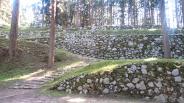 | スタンプは麓の資料館でゲット。 パンフをいただき、城跡へ車で向かう。 駐車場から山道を歩く。 犬と運動にちょうど良い感じの山城。 |