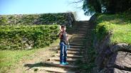 | 資料館でスタンプを押した後、 車で本丸駐車場まで移動。 豪雨の影響で昨日まで通行止めだったとのこと。 山城は足で登ってこそなのに楽してしまった。 眺望が素晴らしかった。 |