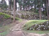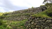 | 車で駐車場まで上がっていった。ボランティアガイドの方からパンフレットをもらう。スタンプはどこと聞いたらふもとの資料館だった。 こんなに石垣が残ってるのを堪能して麓におりてスタンプおす。 |