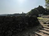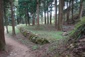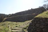 | よる年並みに負けて本丸駐車場まで黒で。 情け無い… ウッドチップで歩きやすかった。 年寄りに優しい山城。 段々の石垣立派です。 |