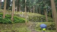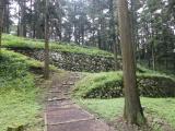 | 資料館でスタンプを押した後、車で本丸近くの駐車場まで行き、本丸を見学しました。通路周辺はきちんと草刈りがしてありました。 その後、展望台まで移動したのですが、ハチやアブがまとわりついてきて、恐怖を感じました。夏でも長袖長ズボンがベターかと思います。 |