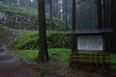 | 29城目 実家に帰省中に車で訪問。 大雨洪水警報発令中のため、レインスーツ、トレッキングシューズで完全防御の上訪問しましたが、本丸跡まできたときに目の前の林に落雷があったため、さっさと写真撮って15分で退散です。石垣も結構残っており、見るところは多そうなので、いつか再訪します。 |